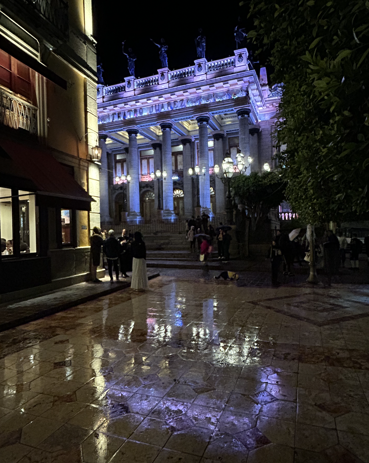 There are a lot of stairs here. It's a vertical city. One would get used to the stair climbing, I'm sure, but flatness is a scarcity. No wonder, then, that the prime area of Zona Centro with the Jardin de la Union, the Teatro Juárez and the Templo de San Diego de Alcalá are all squeezed into the littlest of flat spots in the middle of the valley. It's picturesque, and I loved the trimmed and groomed trees of the Jardin.