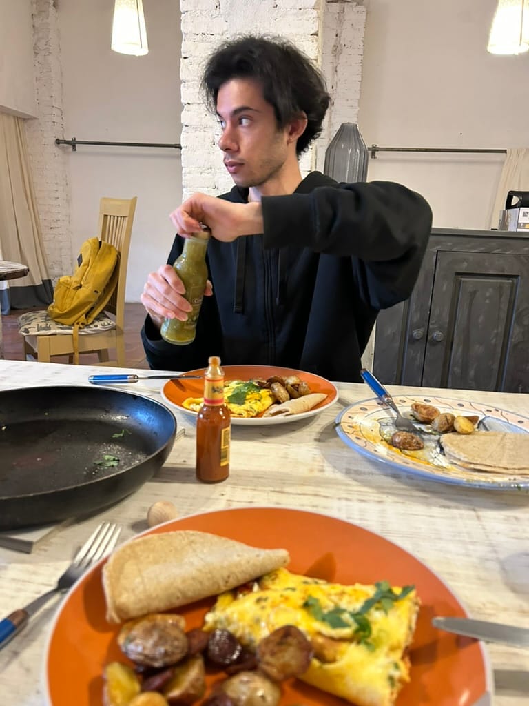 We are both feeling a bit under the weather, so some low-key time for just chilling and hanging while our bodies do their self-management. Self-care included some delicious home-cooked omelette with goat cheese and tomato...