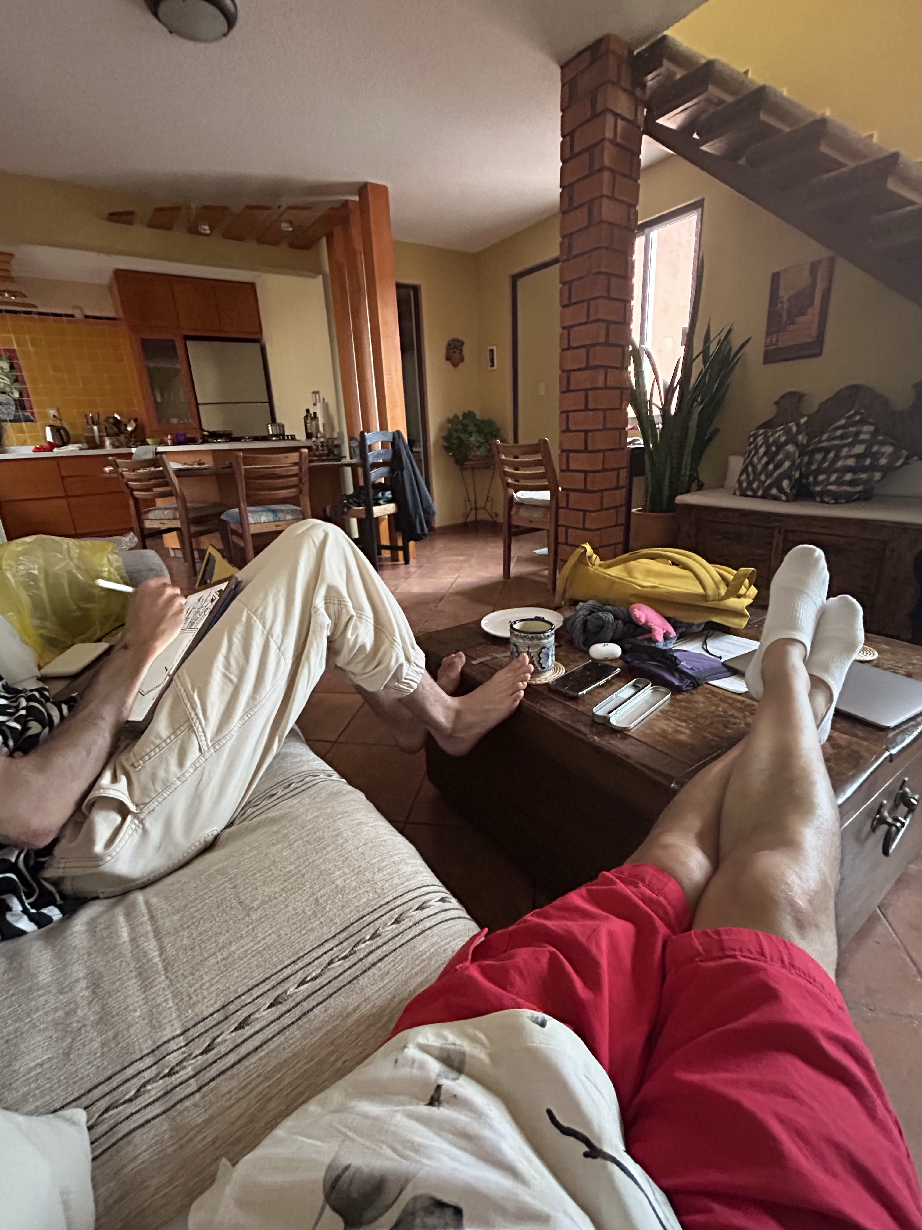 A cloudy day with the rain threatening to present itself at any moment. So, other than some local walking to the tienda, and the family-style resto to eat some tostadas, we enjoyed sitting, and drawing, and imagining ventures, and listening to some great tunes and preparing and eating some good food.