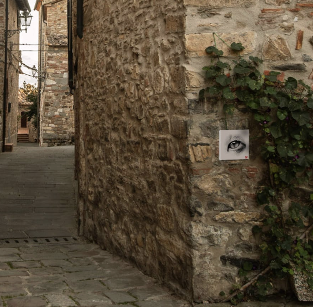 A fun project proposal for a little town in Tuscany. I imagined small ceramic tiles that would be encountered serendipitously in public spaces. The tiles were imprinted with illustrations of the eyes of our fellow creatures and beings and QR codes that transport the viewer into the domain of the animals.